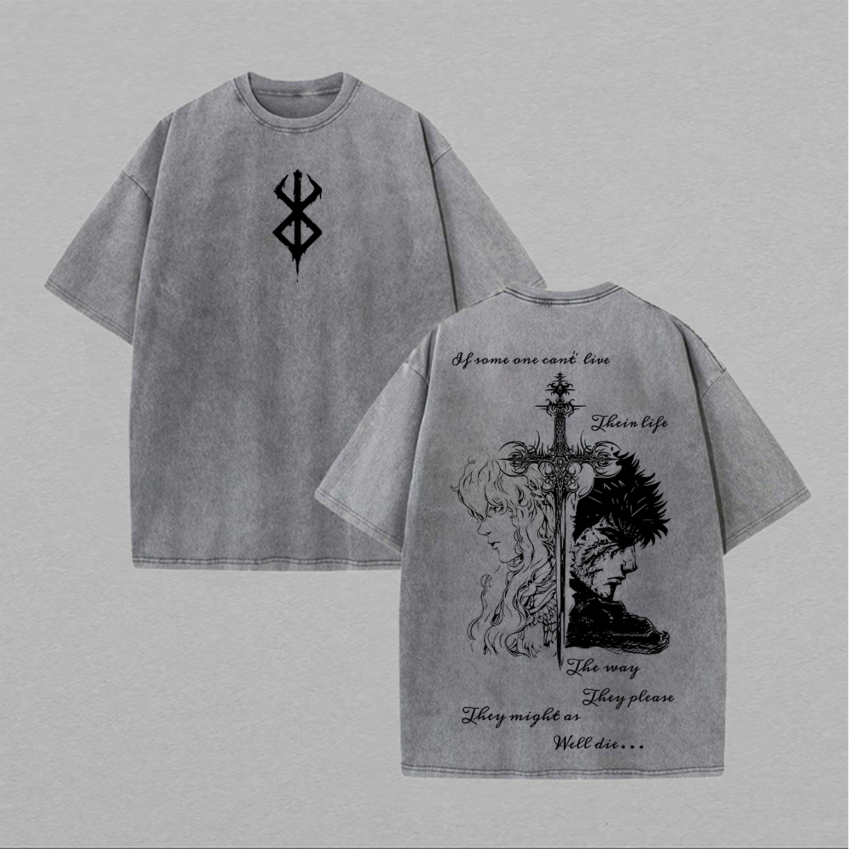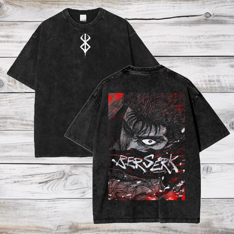 Berserk Anime Acid Wash Oversize T-Shirt Guts Anime Tee Gift For Him