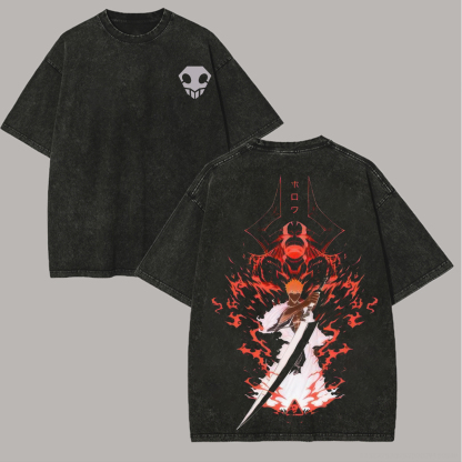 Bleach Ichigo Kurosaki Printed Unisex Washed T-Shirt