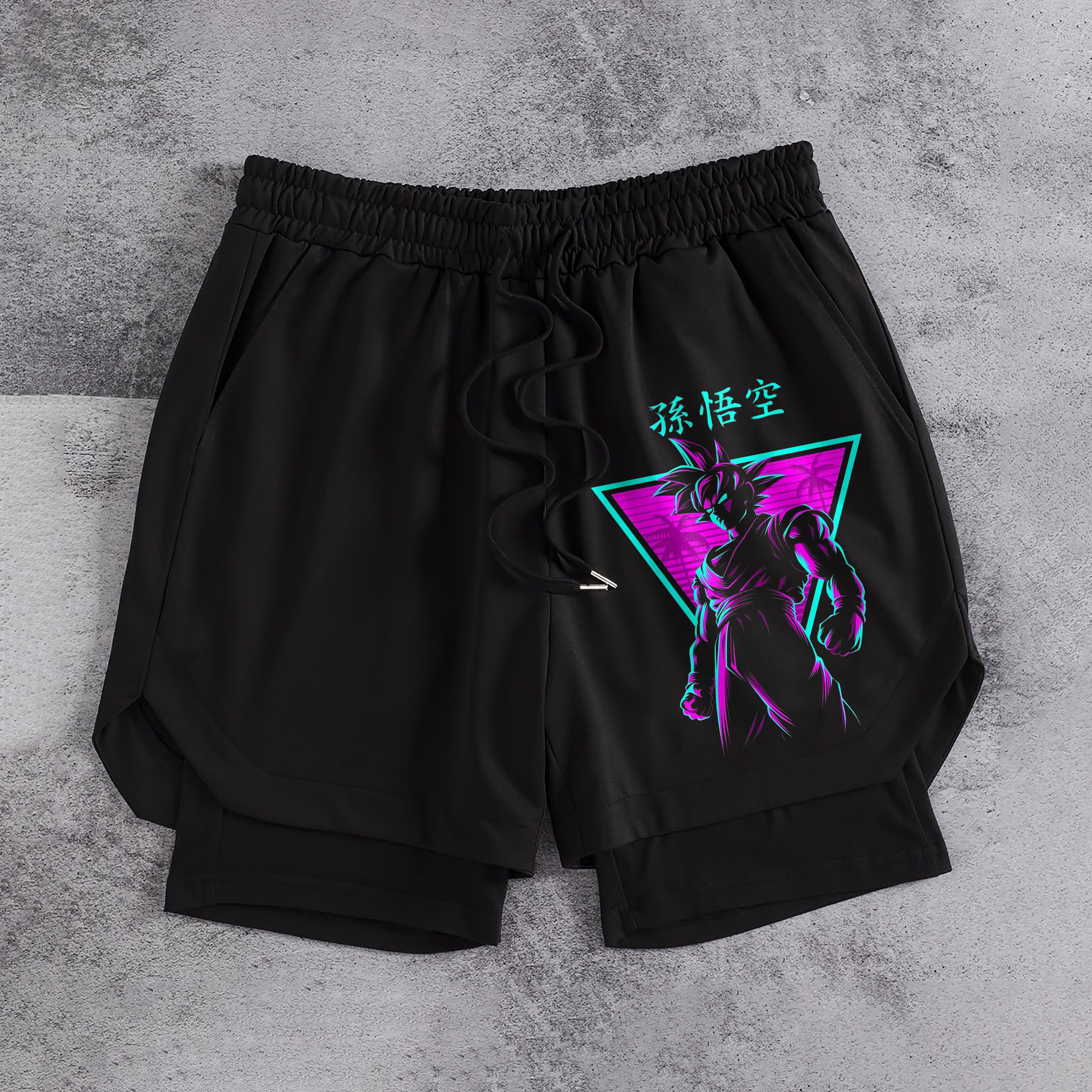 Dragon Ball Sun Goku Print Men's All-In-One Fitness Shorts