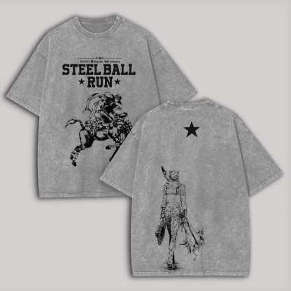 JoJo's Bizarre Adventure Steel Ball Run Printed Unisex Washed T-Shirt