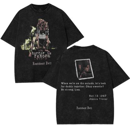 Resident Evil - Lisa Trevor horror Game capcom Washed Tshirt 2 Sided Cotton unisex graphic tees Casual graphic t-shirts